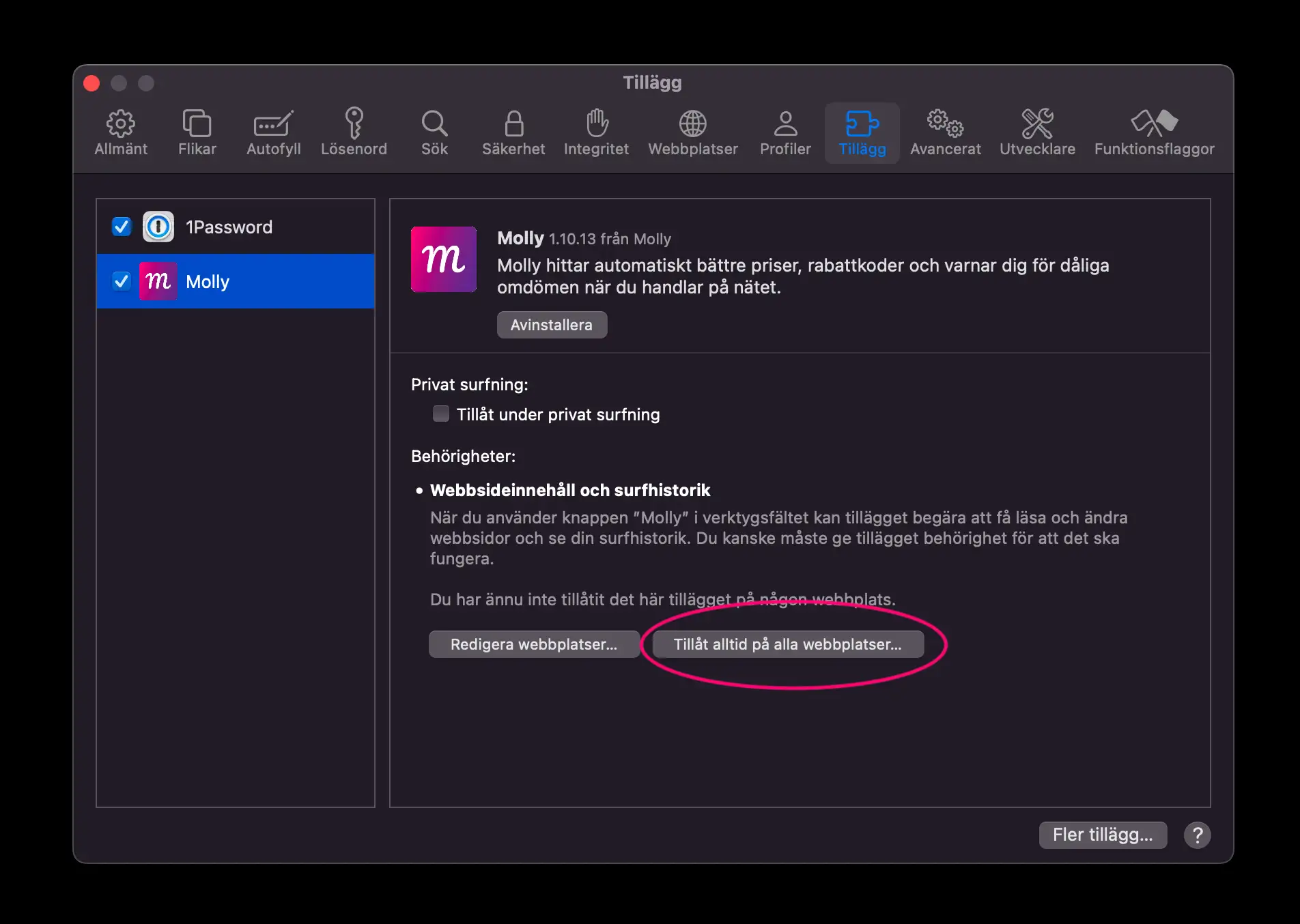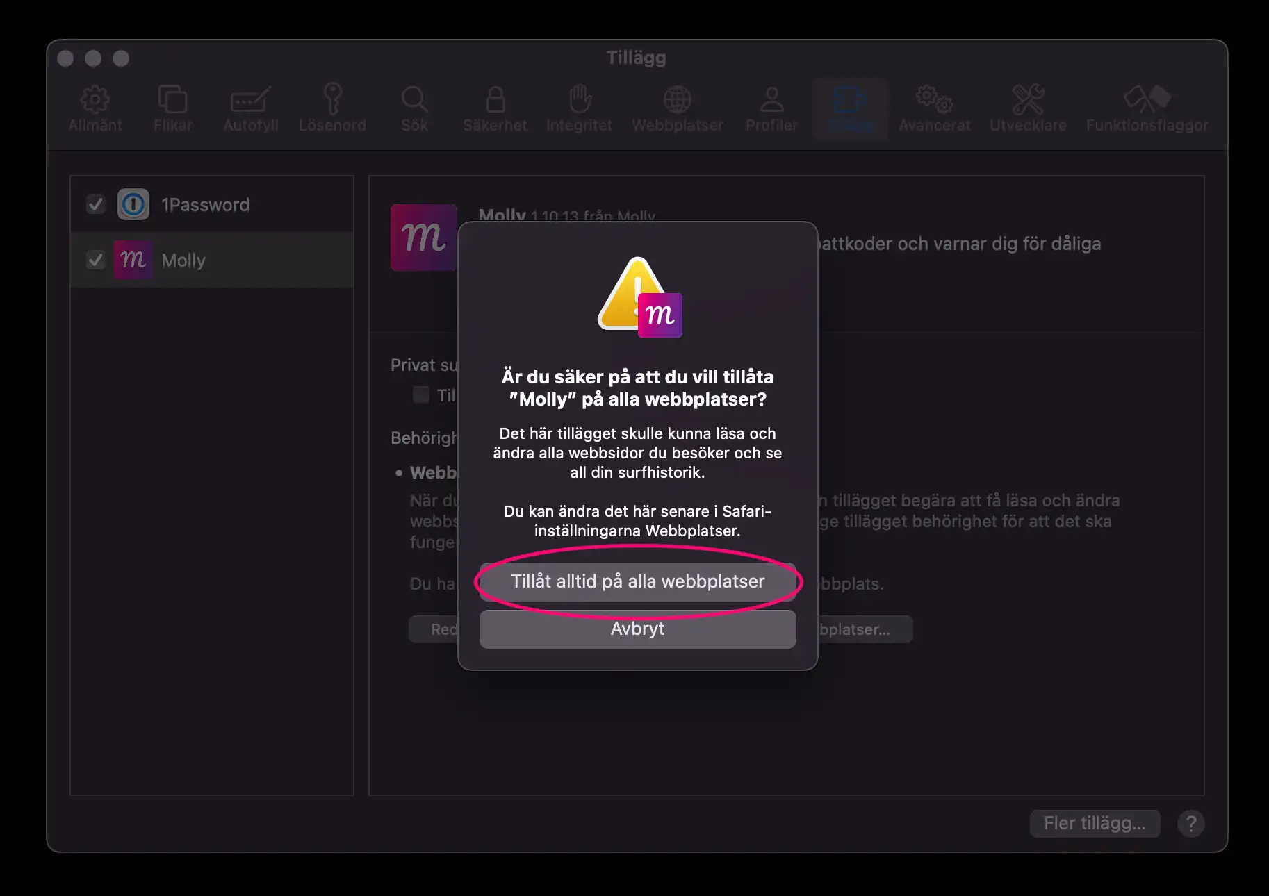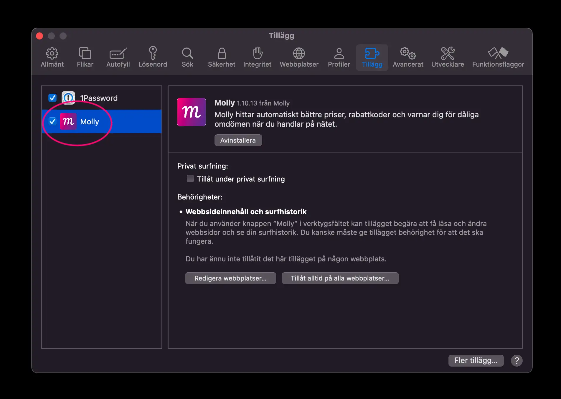 Molly dyker automatiskt upp pÄ aktiva webbplatser. Ha det sÄ kul!